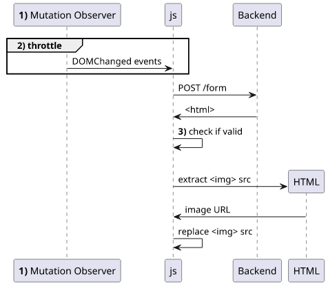 Note: This approach parses the HTML returned by the form instead of constructing the new image src locally as the online demo server does. That approach works also but would require some libraries to include which I didn't want to do. Luckily, the local server is fast enough so it does not do any noticeable slowdown.