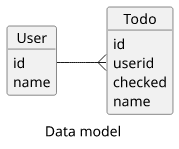 As with every API, we first need to think about what kind of data we want to store and their relationships. In this example, we'll have users and every user can have a list of Todo items.