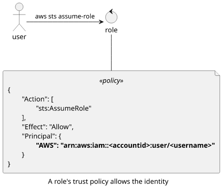 Alternatively, it can trust an account, in which case the identity also needs permissions to assume the role. This is the more common scenario.