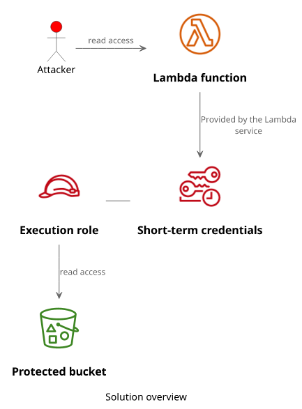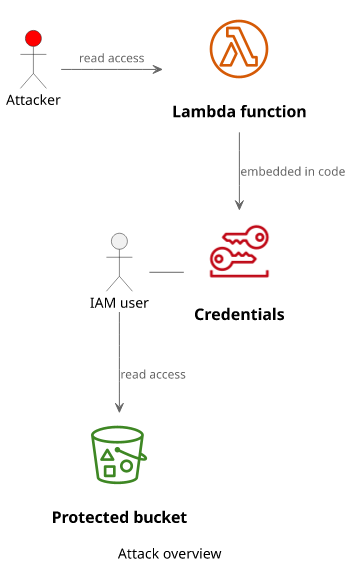 The target is the object in the S3 bucket. How can an attacker gain access to it with only read access to the Lambda?
