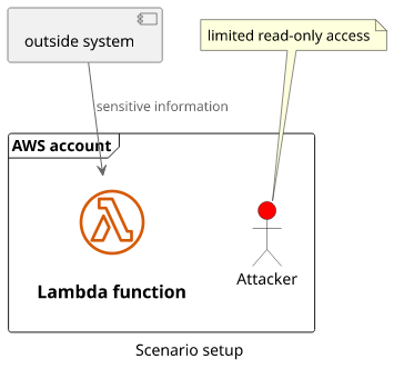 The target is the sensitive data that is passed to the Lambda function.