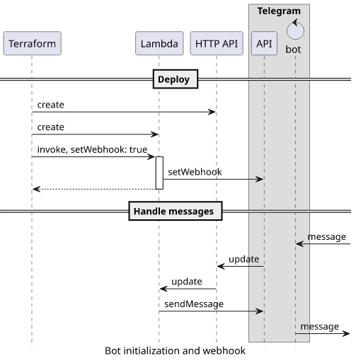 In this article, we'll deploy a serverless Telegram bot to AWS using Terraform. It runs on AWS Lambda behind an HTTP API and implements a simple echo functionality: whatever you send to it, it echoes it back.