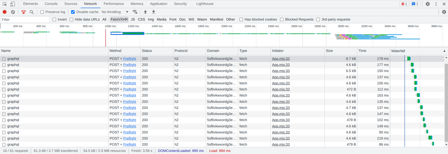 The network tab shows the request that were made: