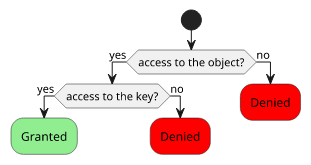 Encryption then is not about splitting a file into two, but about splitting the permissions into two. You need access not only to the object but also to the key.