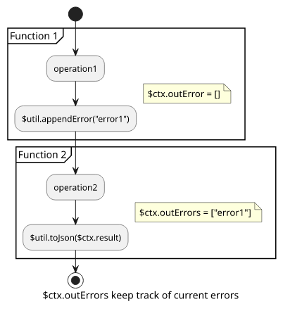 Steps can also check previous errors in the context. These errors are available in the $ctx.outErrors, which is an array containing all previously