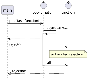 The problem is the order of operations here. Since the postTask does not immediately call the function, the reject() runs first. In a sizeable