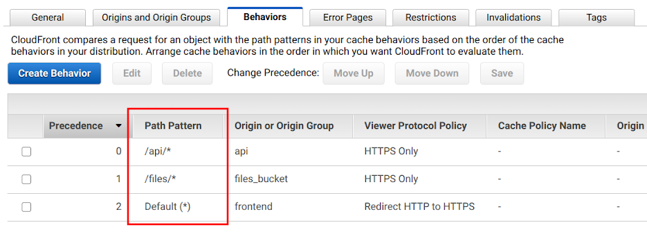 Each behavior has a path pattern that defines what paths it can handle. This is a filter expression, an incoming request either matches this pattern or not.
