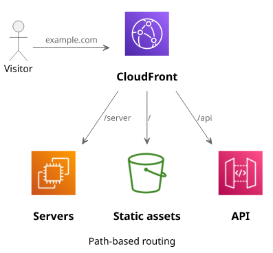 CloudFront is a proxy that sits between the users and the backend servers, called origins. When a request comes in, CloudFront forwards it to one of the origins.