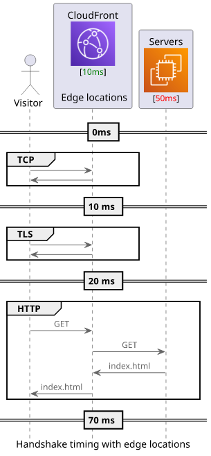 Let's see how adding CloudFront to the mix speeds up connections for this second group of visitors!