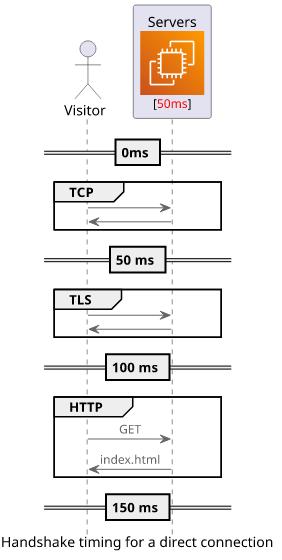 When a visitor goes to your site, the browser needs to establish a connection before it can send the HTTP request. Not counting the DNS resolution, there is one roundtrip needed for the TCP connection, and an additional for the TLS. Versions preceding TLSv1.3 require 2 roundtrips for the TLS connection.