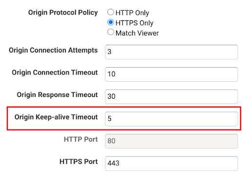 For a custom origin you can configure how long this connection will be kept open using the Origin Keep-alive Timeout setting: