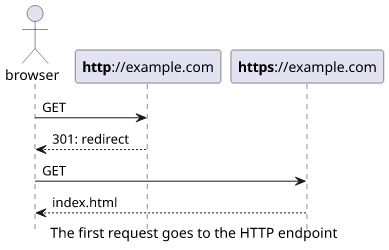 But this setup still makes an unencrypted connection as the browser sends the initial request to the HTTP endpoint and this opens the possibility of a transport-layer attack. If somebody can modify the response, they can keep the visitor on HTTP, which they control, or redirect them to a different site. And all while the website deploys a secure site and does everything to prevent it.