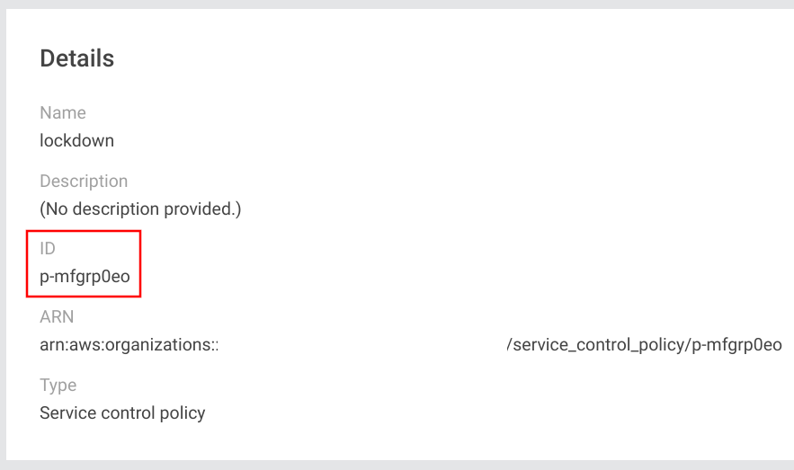 Note the policy ID as we'll need that to lock down an account: