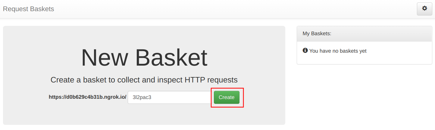 With rbaskets, you need to create a basket first. Open the ngrok domain and use the Create button to generate an empty basket: