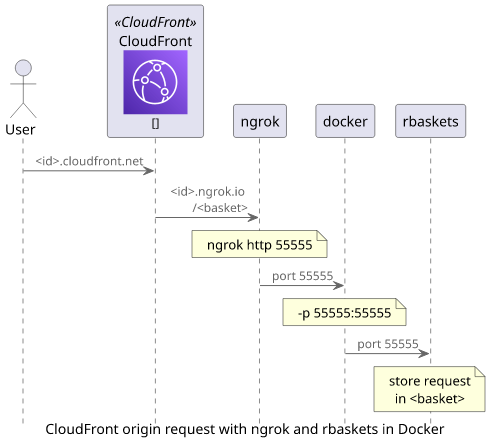 Now when there is a request to the ngrok domain (https://d0b629c4b31b.ngrok.io) it forwards it to the local port 55555, where the rbaskets service is listening.