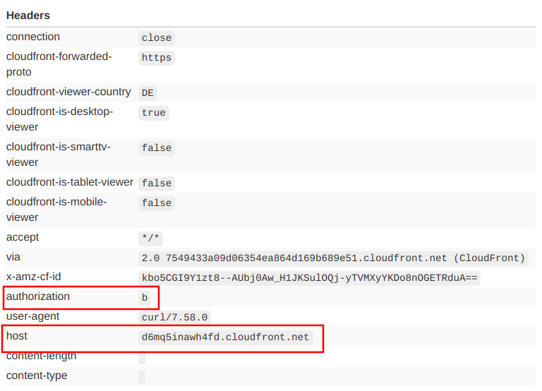 curl -H "Authorization: b" https://d6mq5inawh4fd.cloudfront.net/