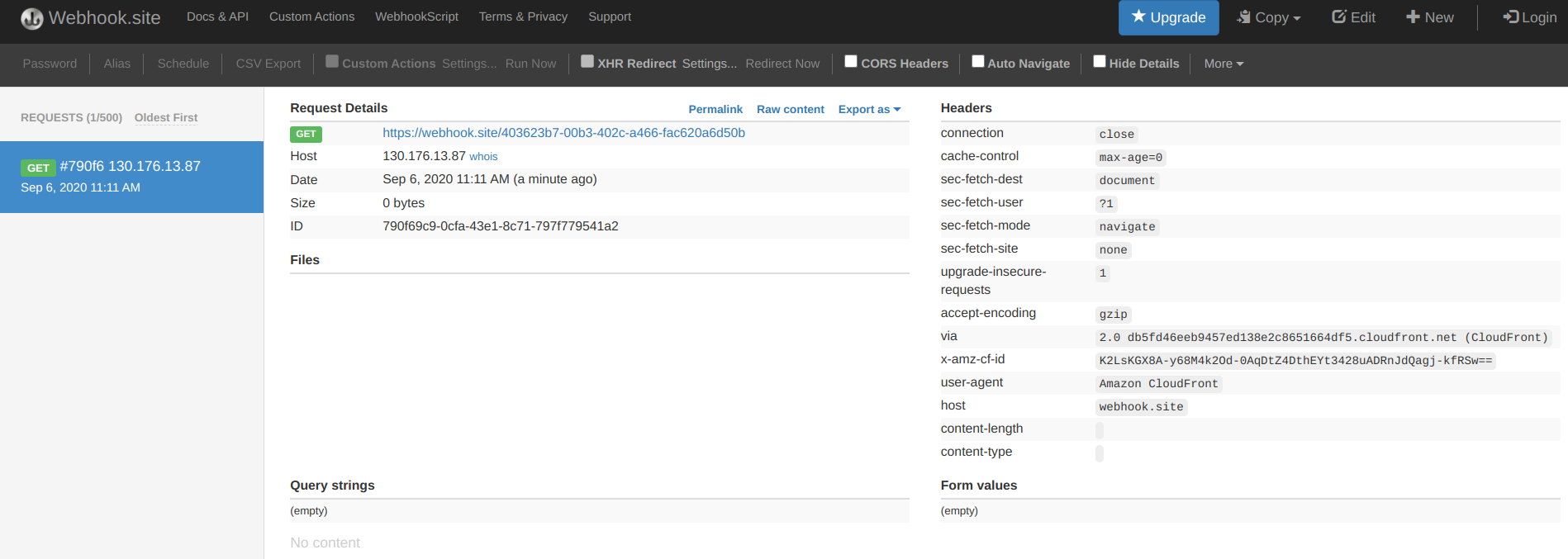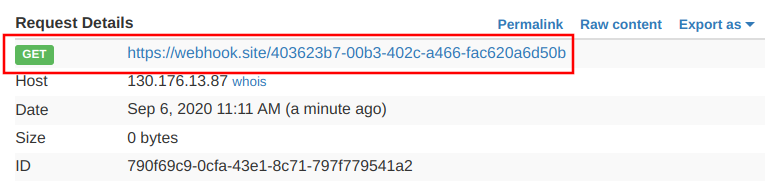 The webhook.site webapp automatically refreshes the list with the new request and prints all sorts of useful information about it: