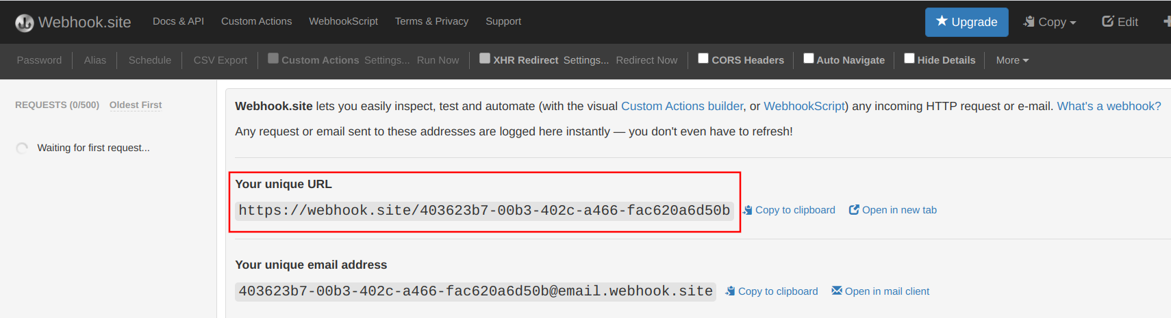 When you go to the site it gives you a unique path under the webhook.site domain. This is the unique debug endpoint you can use: