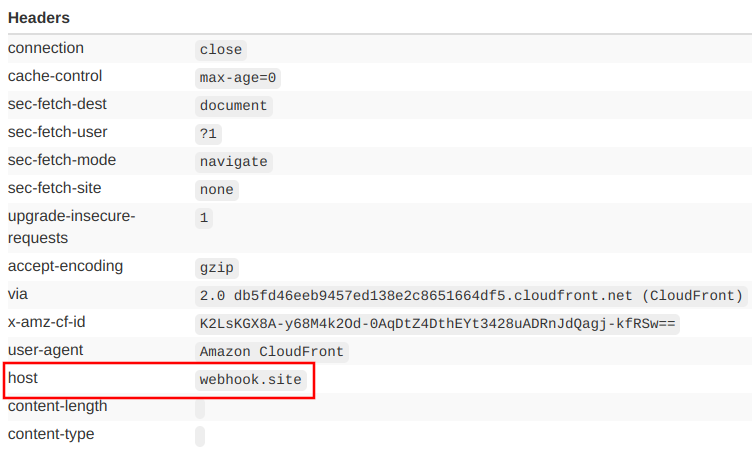 Or the headers in the request, which are quite different than what the browser sent to CloudFront. One header that can cause trouble is the host: