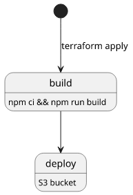 an npm run build, where we can also pass parameters from Terraform with the -- --env construct.