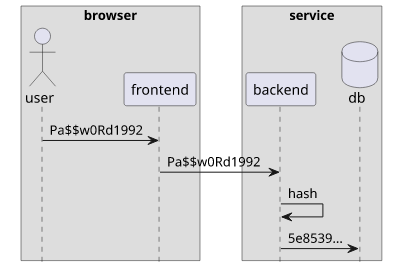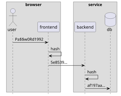 - The frontend hashes it, then sends to the backend