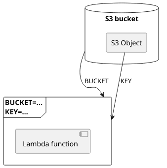 When you deploy this infrastructure, the real Lambda will have access to the object via process.env.BUCKET and process.env.KEY while the local one does not.