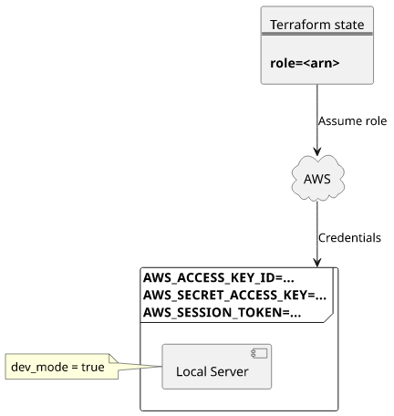 AWS_SESSION_TOKEN. Unfortunately, these are not available in the Terraform state file, so we need a different solution here.