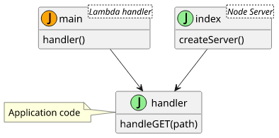 The benefit of this separation is that a non-Lambda code can also call this handler. For example, a NodeJs HTTP server can use the application code to produce the same responses as the Lambda.