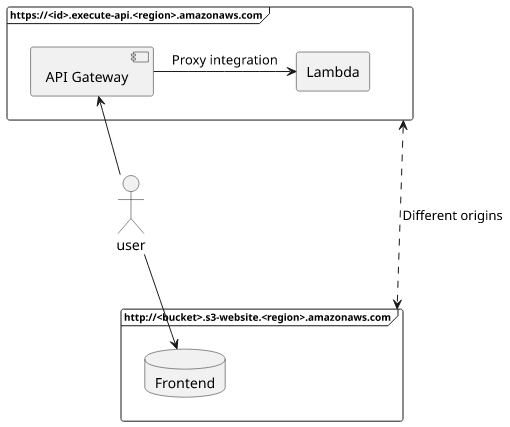 In this example, I'll use a website deployed to an S3 bucket. This is cross-origin as the bucket website URL is different than the API Gateway URL.
