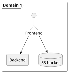 A common architecture uses 3 domains: one for the frontend, one for the backend, and one for the bucket the files are served from. This setup requires setting up for CORS, which means some headers must be returned from the backend and from the bucket.