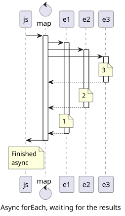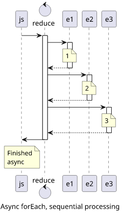 But notice that the iteratee functions are called in parallel. To faithfully follow the synchronous forEach, use