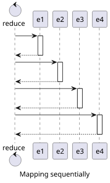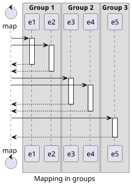 To map the groups sequentially, we need a reduce that concatenates the previous results (memo) with the results of the current group: