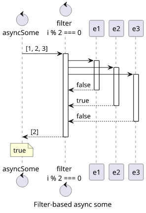 Considering only the result, these functions can be emulated with an async filter, which is already covered in a previous article how to convert to async.