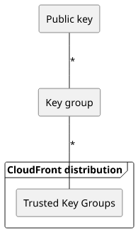 This means you can add multiple keys to a group, and you can add multiple groups to a distribution's cache behavior. It makes it easy to both rotate keys and use multiple independently managed stacks to sign URLs.