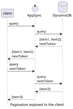 To implement this in AppSync, the field for the list should include a nextToken both in the arguments and the response:
