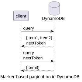 DynamoDB implements marker-based pagination. This means when it returns a partial response it returns a marker (called nextToken). When you want the next