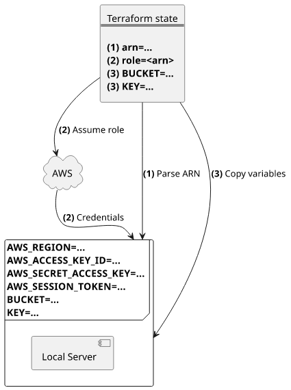 BUCKET,KEY, etc.) - It adds a statement to the execution role's trust policy with a 10 minutes time limit, then assumes it, and sets the keys (