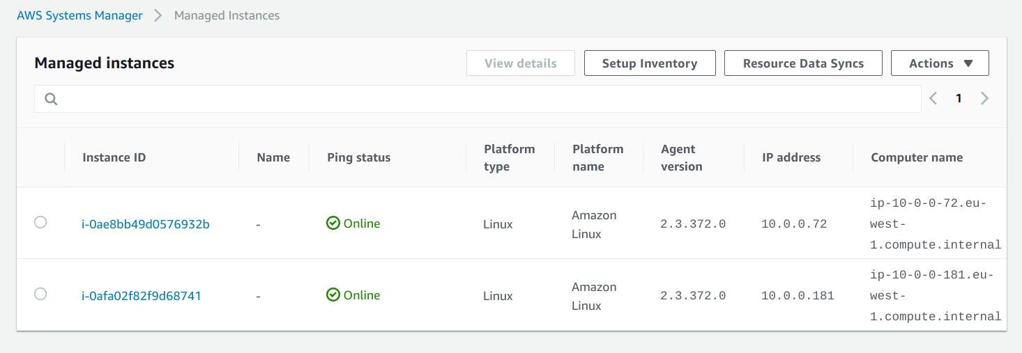 If everything is set up successfully, the instances will show up under the Managed Instances in the Systems Manager console: