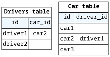 Here, the other ID is available both at the Driver.car and the Car.driver resolvers.