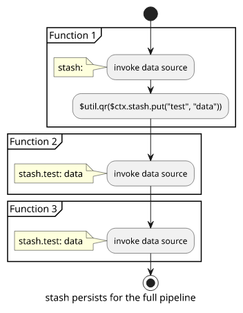 For example, creating a user might need some data from the database, such as what extra attributes to attach to the Cognito user. The first function might read the data, store it in the stash, then the next functions can use that.