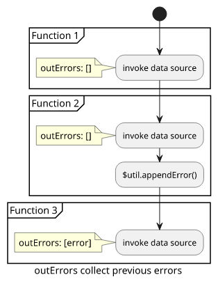 When a function uses the $util.appendError() to add a non-terminating error, it is written to the context.outErrors. This is an array that collects