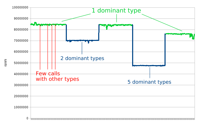 But soon after, another yet unseen type is supplied, so the code is deoptimized.
