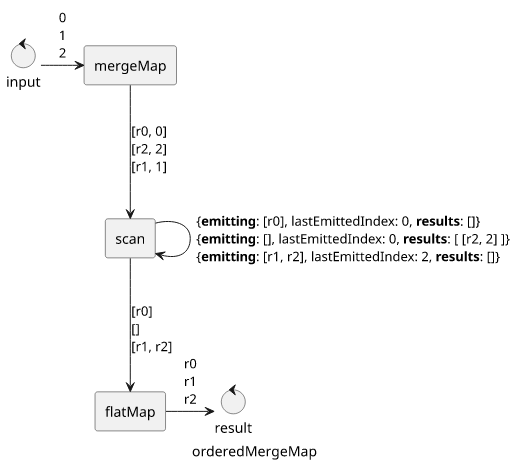 Fortunately, it's not hard to use existing operators to create new ones. The operator below is an orderedMergeMap that emits the elements in-order and