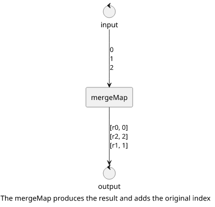 First, a mergeMap calls the mapper function and it controls the concurrency. It also adds the index to the result, so that later operators know the