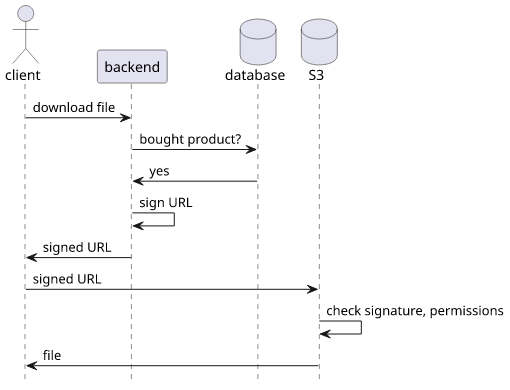 For example, an ecommerce site that sells digital products wants to distribute files only to users who bought those products. In that case, the backend is responsible for deciding whether to allow the download, but then the file itself is served by S3.