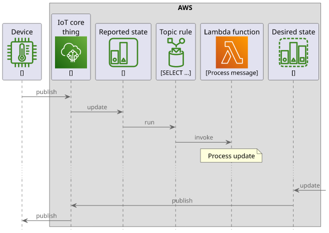 Shadows are organized as a reported and a desired state. The former is set by the device, and provides a way to send data to the cloud. Then the latter allows the cloud to manage the state of the device. For example, a temperature sensor writes to the reported state, while a light bulb reads from the desired one.