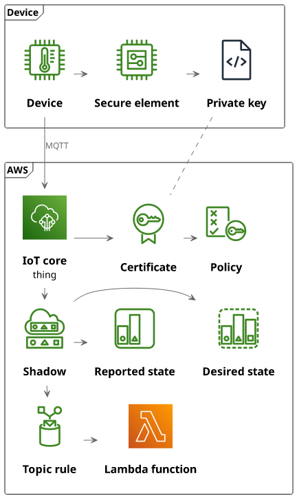 The components you'll need to connect a device to AWS via MQTT
