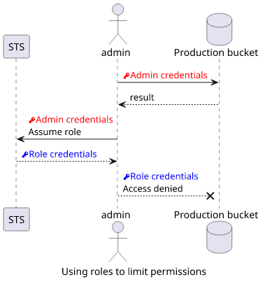 Roles can also limit what a user can do. This is a good practice when an admin does not want to break the production system and instead uses a role that has no access to those resources.