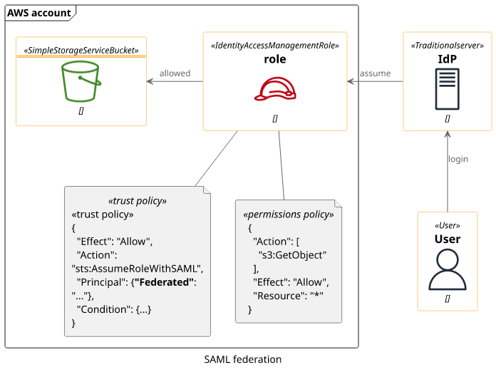 With federated login, users sign in on a separate server and it assumes a role for them in the AWS account. This allows users to use the account without having an IAM user for each of them. With the configured role, you can give them permission to access protected resources.