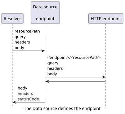 The data source needs only one thing: the domain of the endpoint. This is the first part of the request, and the rest will be filled by the resolver.